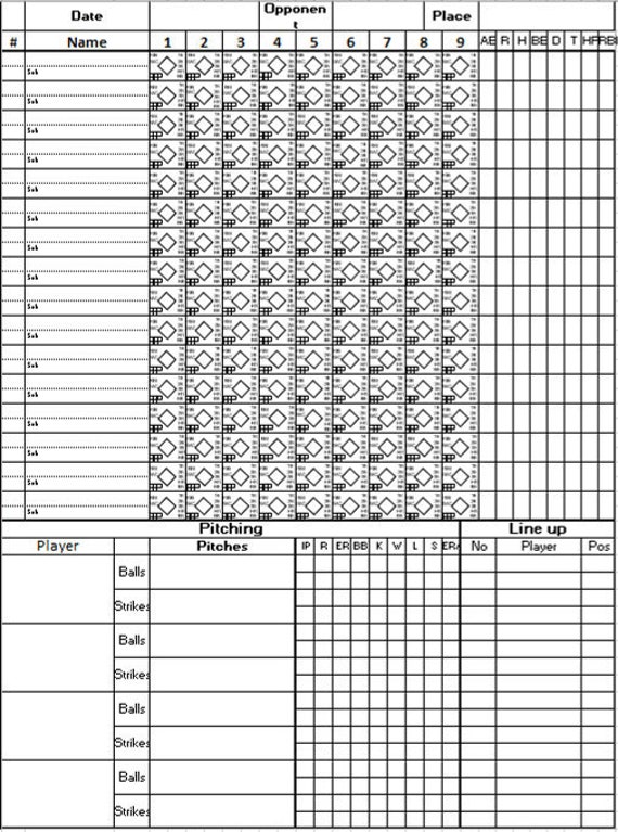 Unlimited Printable Baseball Or Softball Scoresheet For Etsy Finland